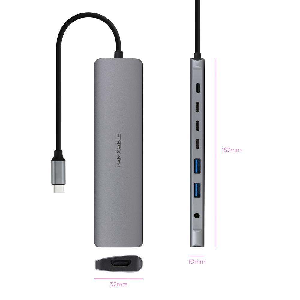 Hub coolbox usb – c 8 en 1 conversor usb – c 3.1 a 2xusb – a 3.0 + 3xusb – c 3.0 + usb – c pd + hdmi 4k@60hz + audio jack 3.5 aluminio gris 18 cm