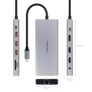 Hub nanocable usb – c 12 en 1 conversor usb – c 3.1 a 3xusb – a 3.2 + usb – c 3.2 + usb – c pd + 2xhdmi 4k@60hz + dp 4k@60hz + rj45 1gbps + tf + sd + audio jack 3.5 aluminio gris 18 cm
