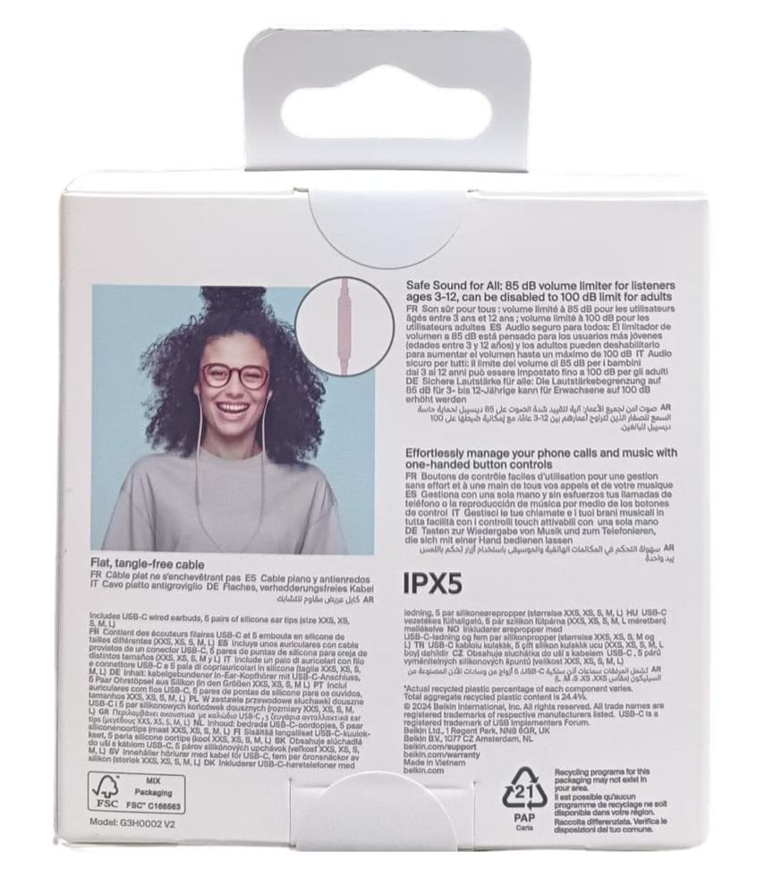 Características de los Auriculares Belkin USB-C Rosa G3H0002HQPKV2