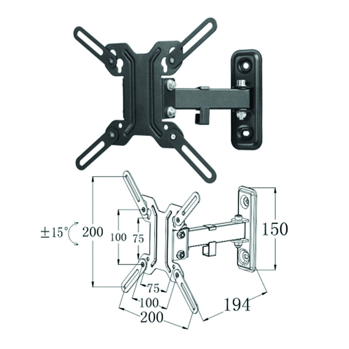 Soporte articulado de pared phoenix para tv – monitor rotacion 180º hasta 55 pulgadas(segun vesa) inclinacion 15º vesa 200×200 hasta 25kg color negro