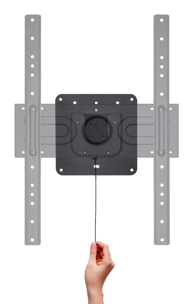Placa de montaje giratoria con mecanismo de bloqueo mediante cordón de seguridad.