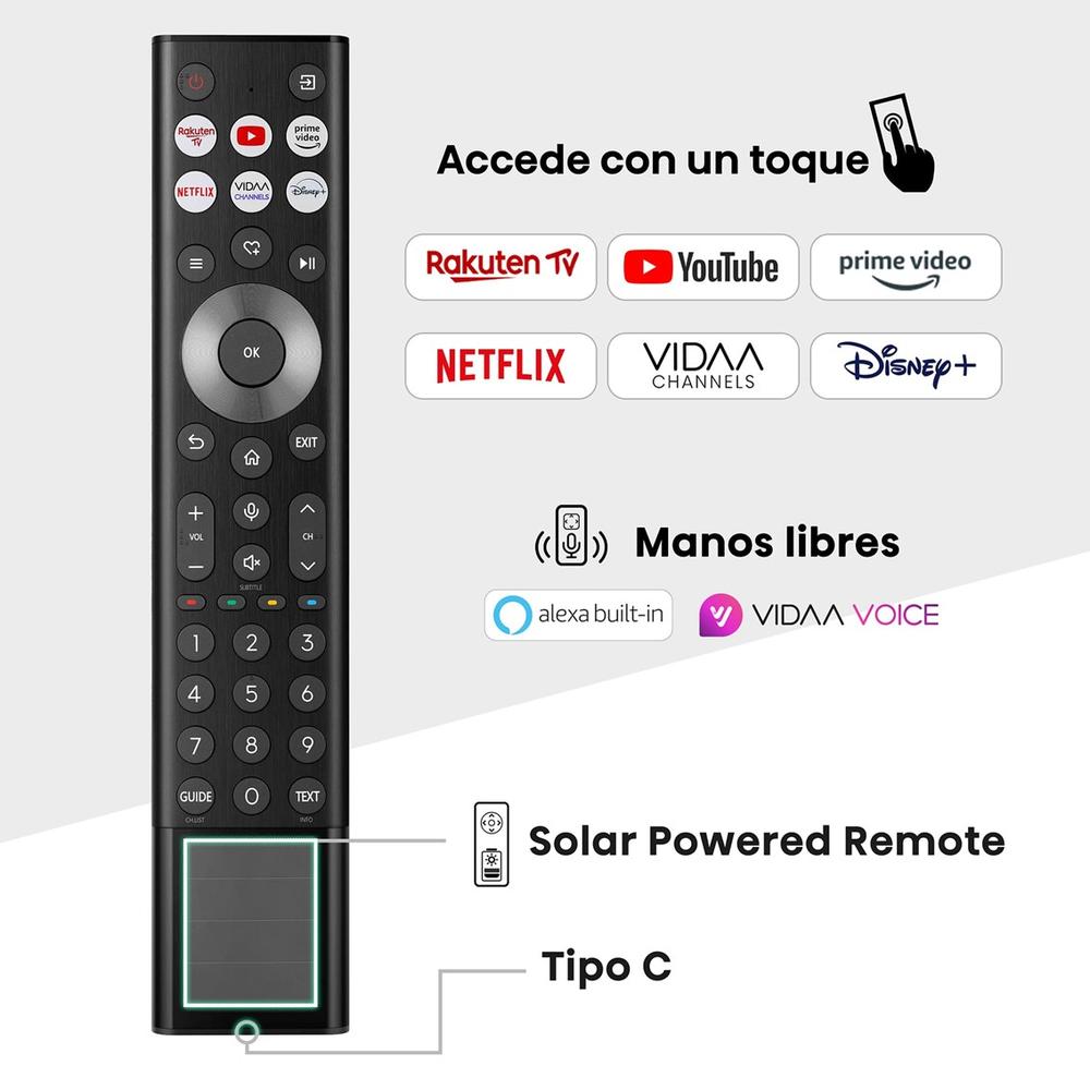 Apps internacionales: Netflix, Prime Video, Disney+, DAZN, AppleTV, Movistar+, Youtube, PlutoTV, VIDAA TV