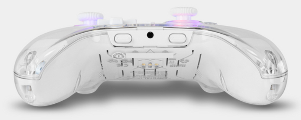 El Krom Krystal no solo responde bien, también luce espectacular. Su carcasa transparente revela el interior del mando, potenciado por un sistema de iluminación RGB que resalta durante la sesión de juego. Esta estética moderna va acompañada de una construcción robusta y cómoda al tacto.