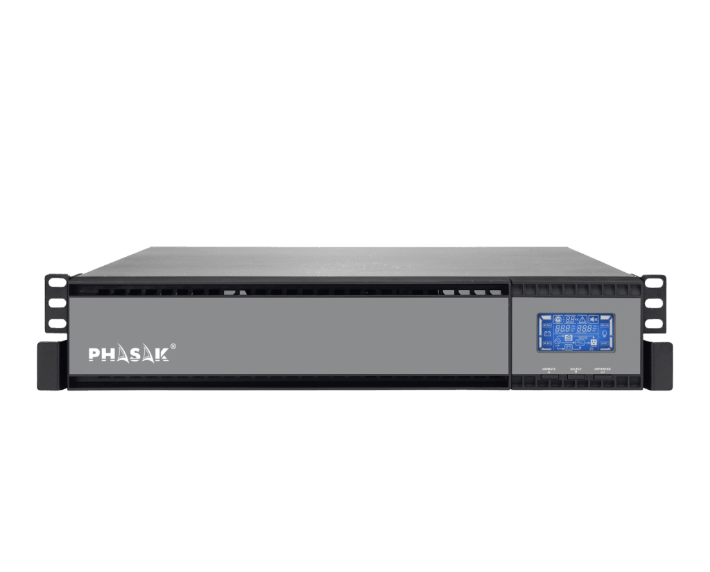 La serie Phasak Online Rack LCD incorpora tecnología Online de Doble Conversión Real Monofásico y permite la instalación de bancos de baterías externos en todas sus referencias. Cuenta con tomas RJ45 protegidas, que ofrecerán