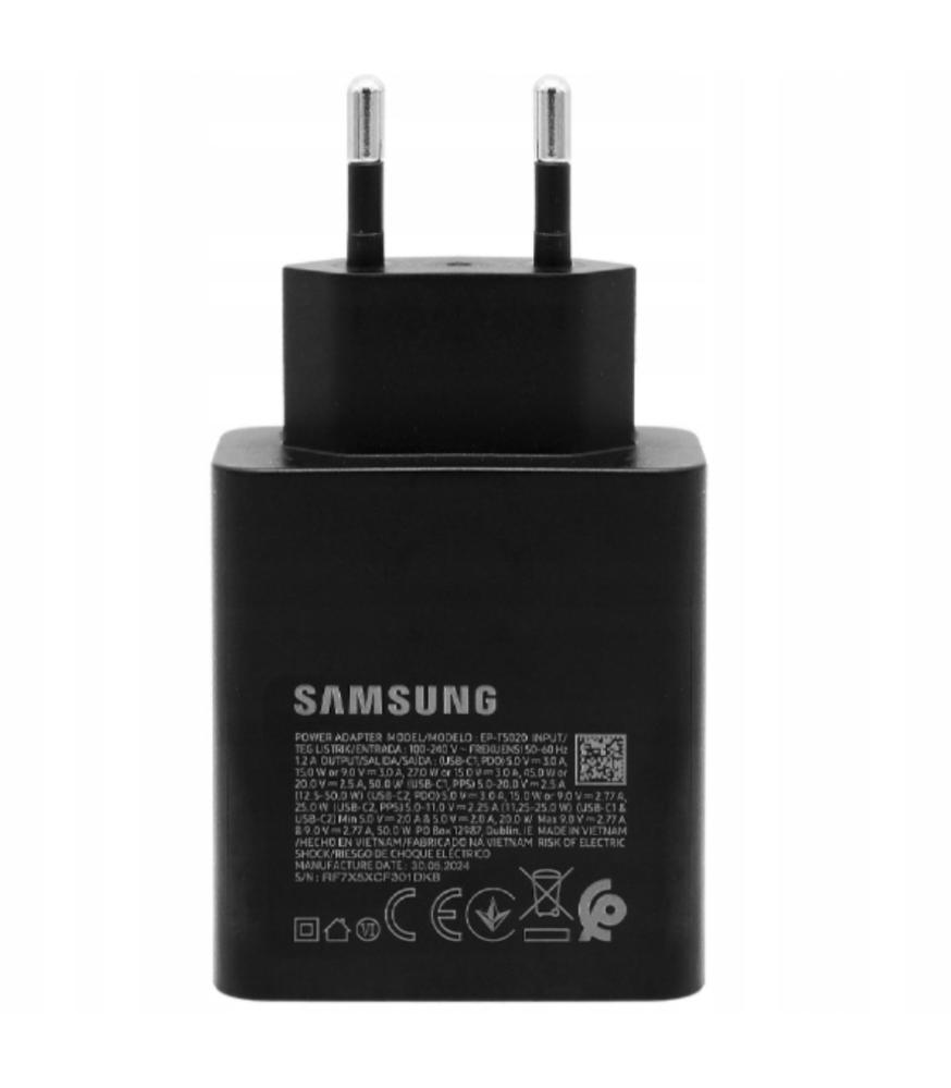 Cargador samsung 50w 2x usb tipo c negro + cable usb tipo c