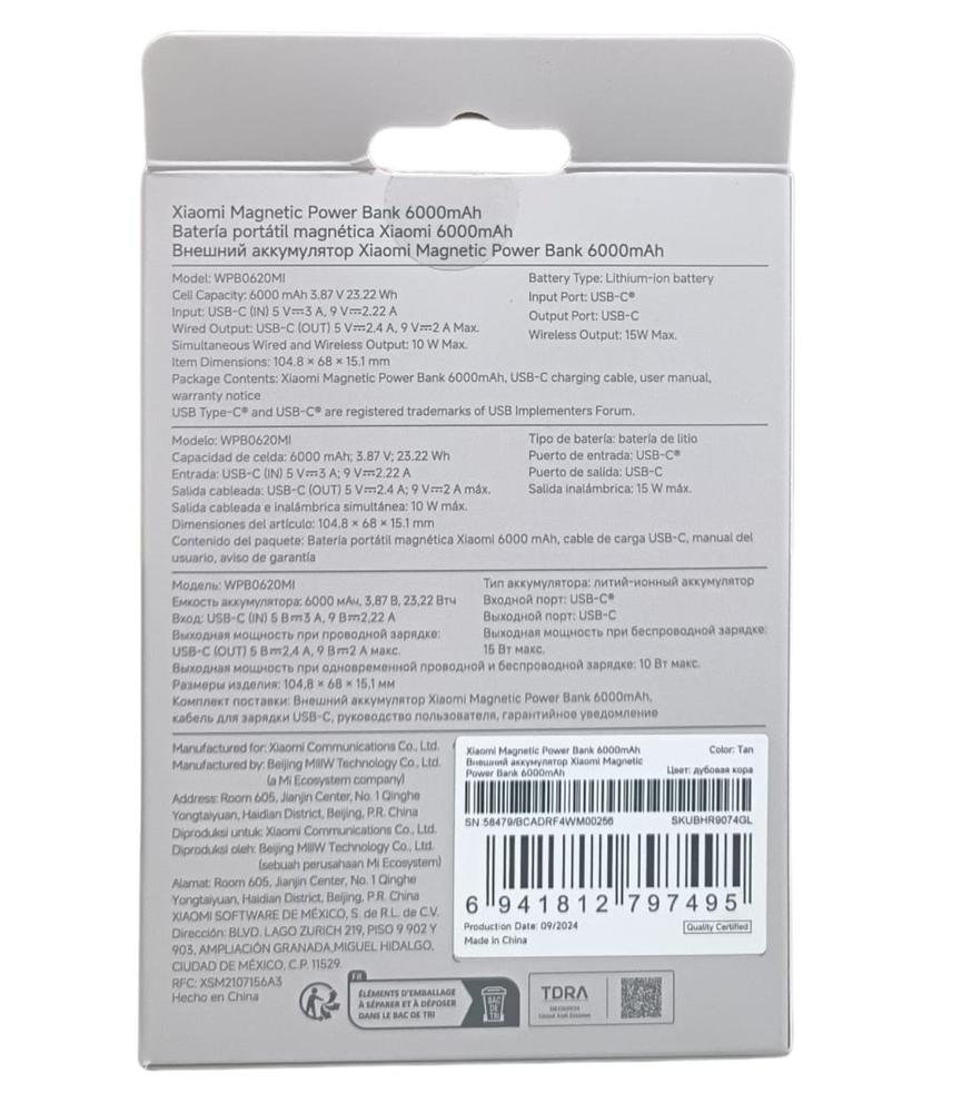 Características de la Xiaomi Power Bank 6000 mAh 15W (MagSafe) Blanco